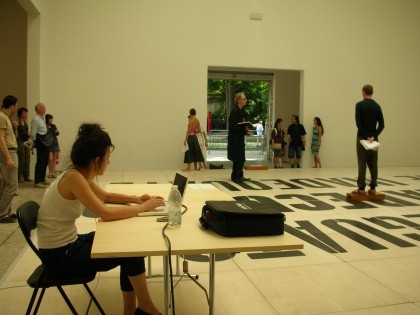 Nevertheless I had to smile with the comment of the art critic – “Because of artists like you, people keep out of the museums”. First: this Biennale proves that enormous masses of people seem interested enough in contemporary art to pay 20 euros entrance. Second: it would not be a bad thing to keep a few people out of the museums – one can hardly walk in them anymore. Third: I believe you would overjoy any of the “classic and greatest” avantgarde artist (think of Debord, think of Tzara) if you told them their work would keep people out of the museums for good. Can anyone think that the dadaist artist, or if you push me, the cubist artist, had as an aim to attract flocks of pleased people to see their work? Smiling masses delighted in extreme to see Les Demoiselles d’Avignon?